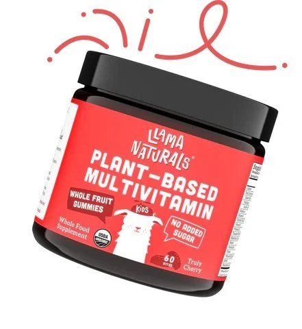 Llama Naturals Plant-Based Multivitamin comes in two flavors - Strawberry or Cherry - with 13 essential vitamins inside. The vitamins are certified USDA Organic, made from real fruits and veggies, and are sweetened with actual fruit - and no added sugars.