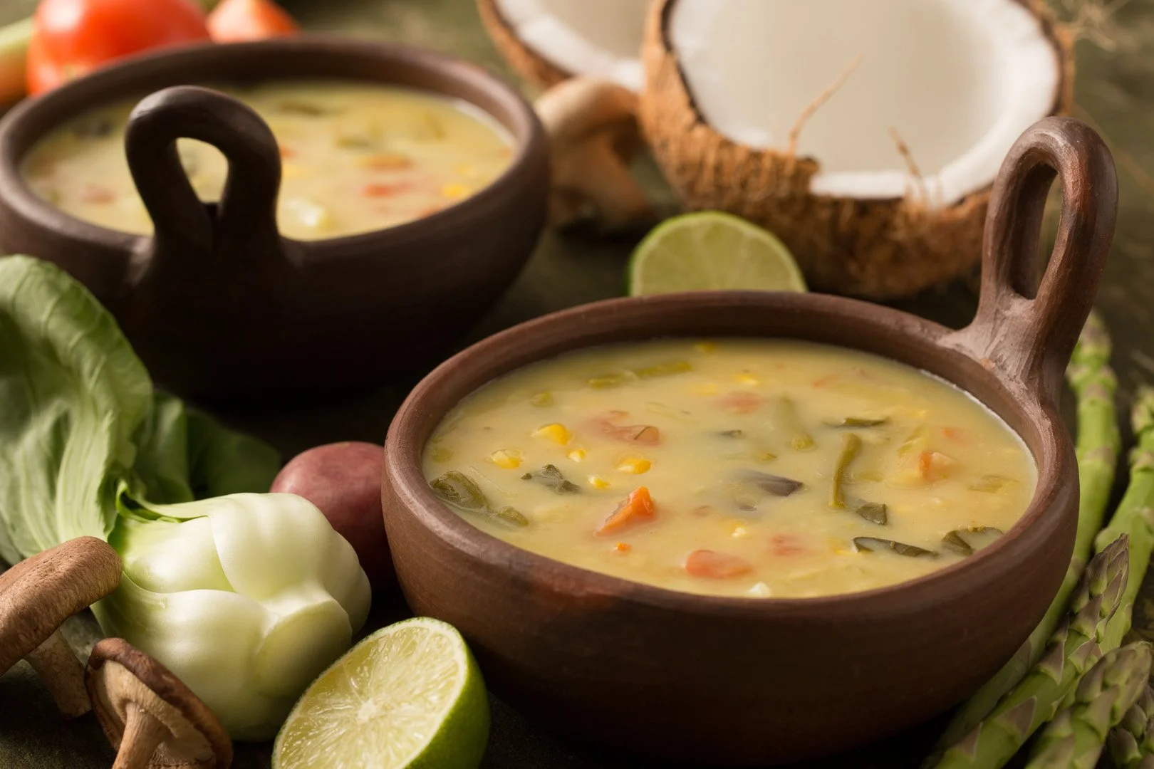 Their vegan and gluten-free Lime and Coconut Chowder is made with baby Bok Choy, asparagus, leek, corn, potato, tomato, Portabella mushroom, curry powder, lime juice, coconut milk, and seasonings. Get it served in a delicious sourdough bread bowl, or a cup.