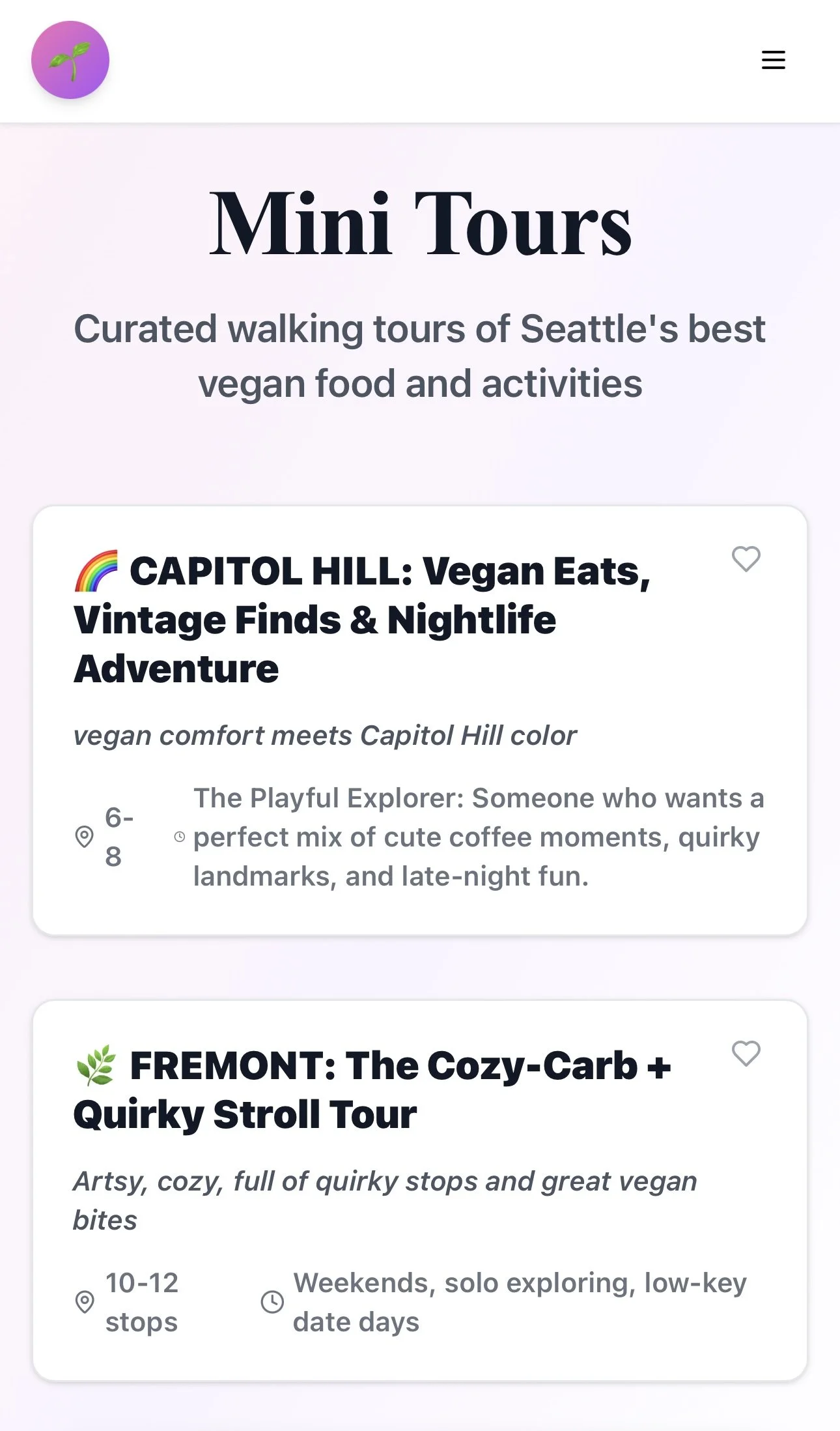 Start with the free interactive map that shows every vegan + vegan-friendly spot in Seattle. If you love it (you will!), unlock the full Passport to access deals, itineraries, events, and insider perks.